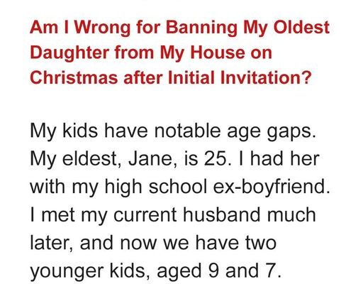 The woman stated that she had two marriages, and between her children, there is an age gap, where her oldest daughter is 25, and her youngest are 7...