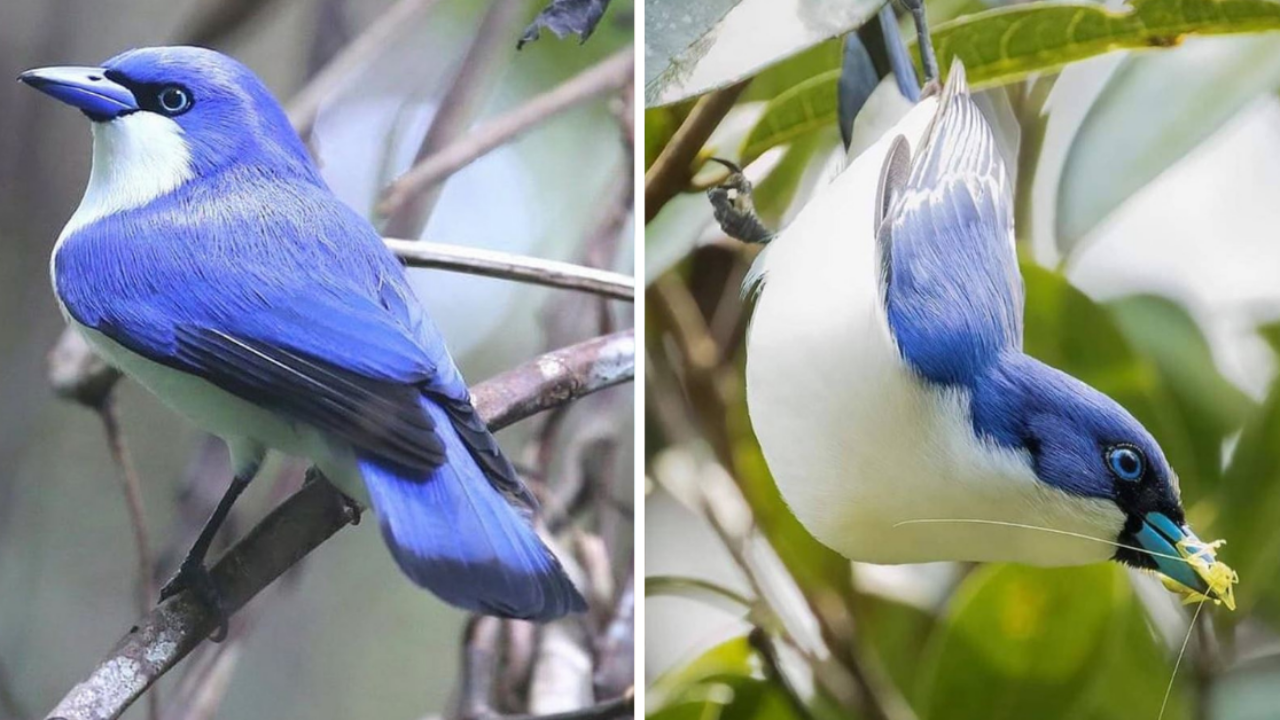 “Discovering the Enchanting Blue Vanga: A Fascinating Bird with Stunning Cornflower Blue Feathers and Pristine White Undersides”