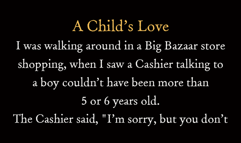 I was walking around in a Big Bazar store shopping, when I saw a Cashier talking to a boy couldn’t have been more than 5 or 6 years...