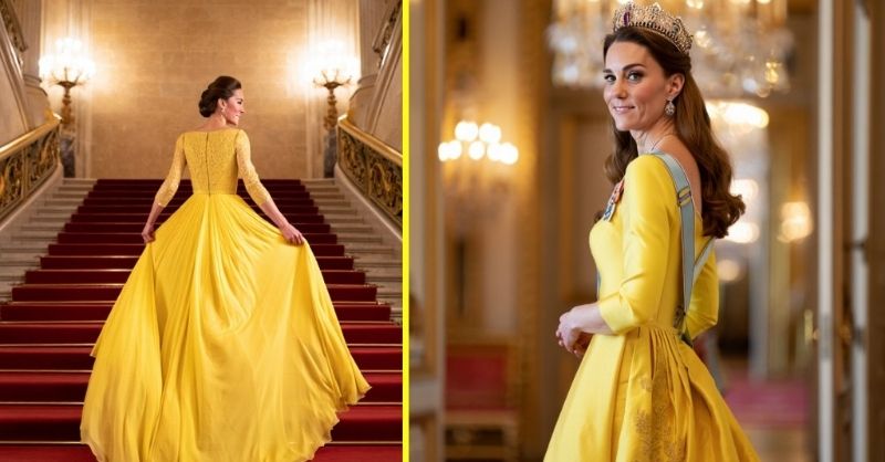The Princess of Wales captivated guests at Buckingham Palace with a striking canary-yellow silk gown, featuring a fitted bodice and off-the-shoulder neckline. The bold color, symbolizing optimism and...