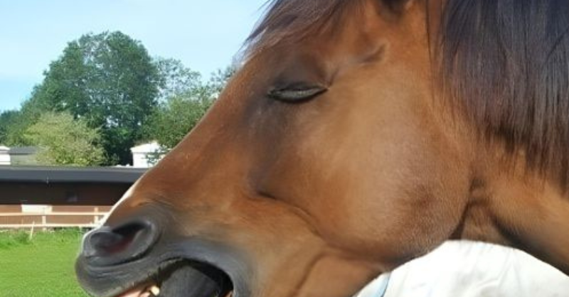 When the horse began gagging for no apparent reason, the owner got out his phone to take a picture because he was perplexed. He only noticed what was...
