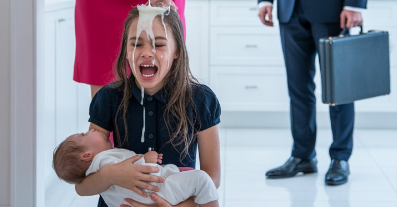 Stepmother Soaks Girl with Milk… Then Millionaire Roars: “ENOUGH!”
