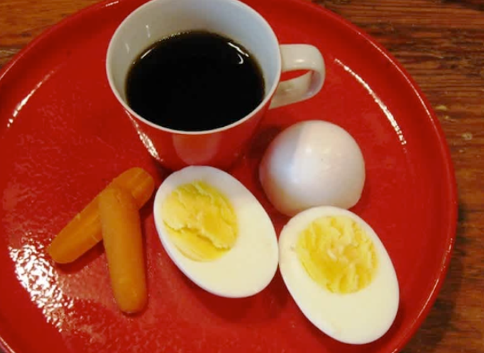 Grandmother shares a piece of wisdom using a carrot, eggs and coffee
