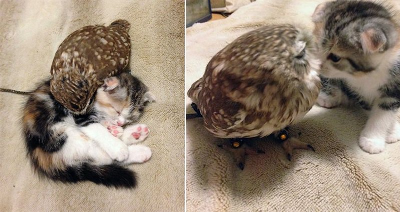 Surprising bond: Tiny kitten and fluffy owlet forge heartwarming friendship
